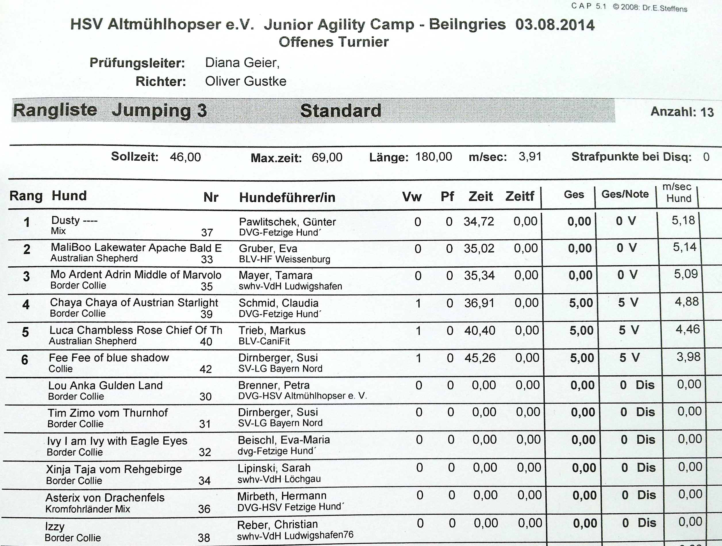 Stets bemüht, eilig durch den Parcours zu hüpfen, hat das KänguLou vor etwa zwei Monaten begonnen, am Slalom abzukürzen *grummel*. Nunja, wer erst am zweiten Tor einfädelt, oder am vorletzten Tor abbiegt, ist tatsächlich schneller fertig. Doch weil Loukees Strategie nicht ganz regelkonform ist, haben wir wieder verstärkt Slalom trainiert … im Training- wie im Turnierparcours. Die letzten beiden Turnier-Wochenenden haben gezeigt, dass er die zwölf Stangen nun zunehmend in der vorgeschriebenen Reihenfolge abarbeitet *FREU*! Und während der Nachwuchssportler an Basics arbeitet, hat der Kamikaze-Aussie zwei Jumping-Platzierungen erhüpft 😀 😀 😀 !